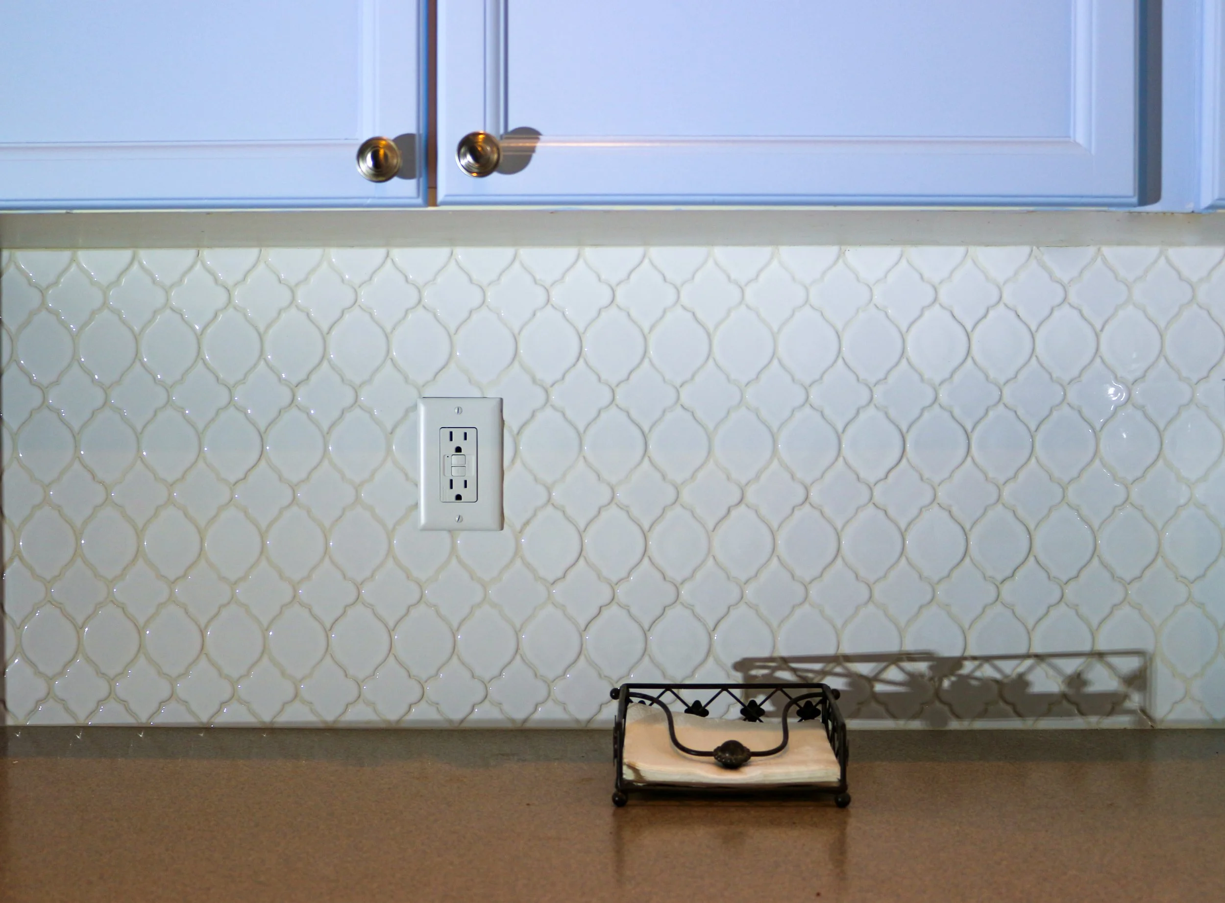 White Lantern Polished Porcelain tile created a beautiful backsplash. Custom cabinets built to match the existing cabinets and new hardwoods finished out the space, giving an updated appearance while increasing the amount of countertop space and storage.